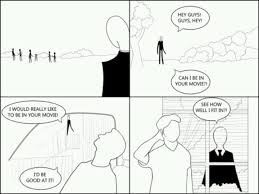 Hoody is first seen in Entry #39, spying on Jay while Jay sleeps in his car. Hoody possibly appears in Entry #40. In the background, when Jay is getting out of his car a figure can be seen leaning against a tree. In Entry #41, Hoody picks up Jay's camera from where he dropped it, and puts it back in Jay's car. It is at this point the audience gets a full shot of his hooded face. Hoody is possibly apears in Entry #42 sitting near a tree when Alex gets out of the car. In Entry #45, Hoody helps to subdue Alex while Masky tries to kill him with a rock. Hoody and Masky run or flee from something they see in the woods, suggested by some to be the Operator. Some also think that they fled so they would not get in the way of the Operator. Those who believe Masky to not be an entirely evil entity believe that he and Hoody fled out of fear of the Operator, as he was coming to Alex's defense. Other theories have Hoody and Masky trying to kill Alex to stop the Operator but when he appeared they obviously had to run away.