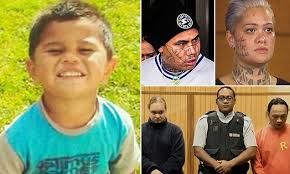 Shailer and Haerewa's dislike for the boy had intensified while caring from him and they were routinely abusing him. Two weeks before Moko died on August 10, Shailer stopped answering Ms Dally-Paki's calls.She said later she should have known something was wrong. Ms Dally-Paki reads her victim impact statement in court on Monday, where Moko's killers were sentenced. She said they reminded her of evil Shailer and Haerewa's dislike for Moko (pictured) had intensified while caring from him and they were routinely abusing him Ms Dally-Paki pictured earlier in 2016, as she recalled how her daughter told her about the abuse Moko sufferedAbout five days before his death, on August 5, they began to kill him, the NZ Herald reported. Shailer repeatedly stamped on his stomach and he lost control of his bowels - it was later revealed his bowel had ruptured, causing septic shock.His face was swelling, he had internal bleeding and a swollen brain, and was left like that for days.There was evidence Moko had been smothered, it was reported.