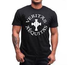 These words have their origins in Roman mythology. Support the Irish brothers with this piece of merchandise or one of the Aequitas Veritas Boondock Saints t-shirts below. Link to: Boondock Saints BrothersDescription: This black Veritas Aequitas Boondock Saints hoodie is the perfect way to stay warm on a chilly day. The pullover hoodie features a classic white Veritas Aequitas design on the front that includes the movie's recognizable cross in the middle. These coveted sweatshirts are hard to find and sure to fulfill your expectations.